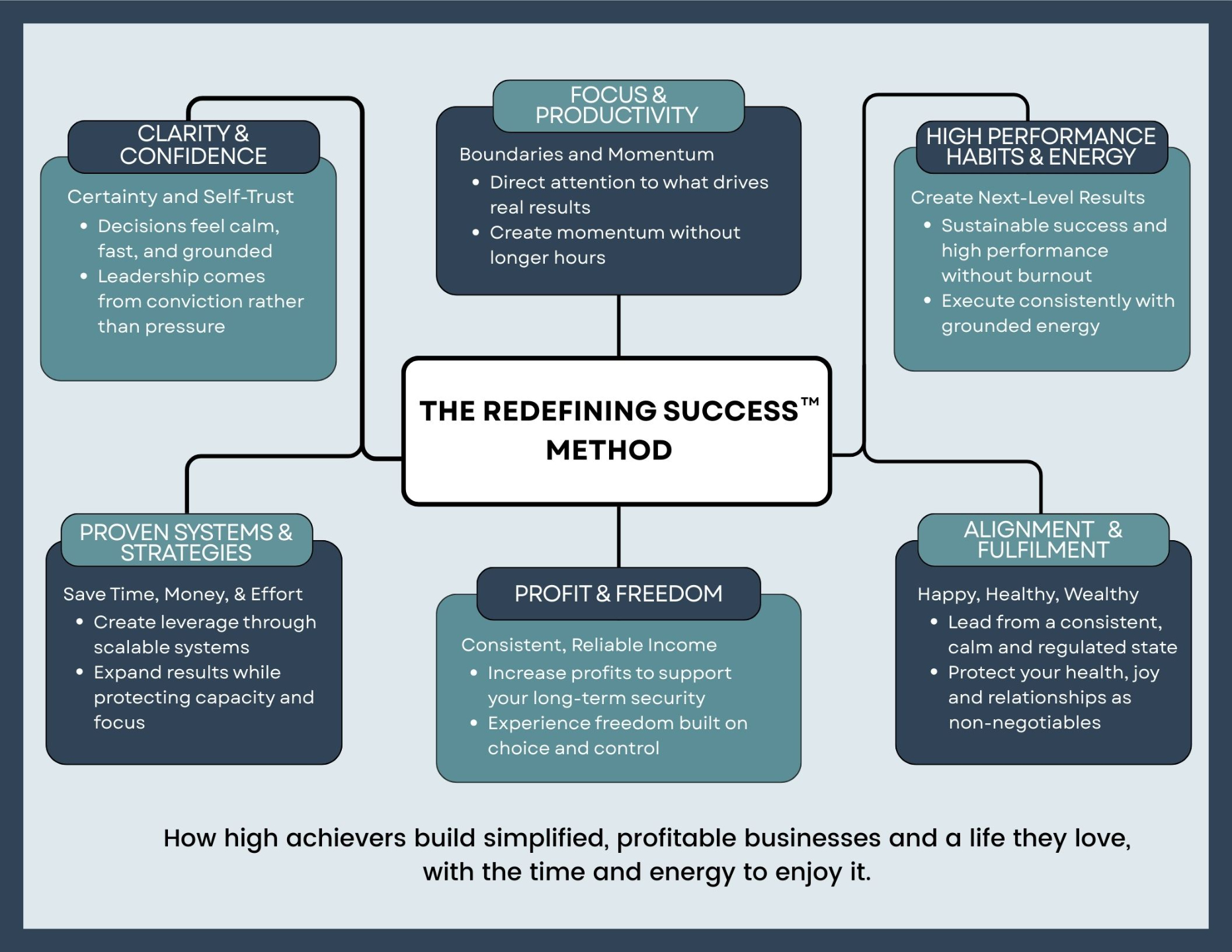 Redefining Success™ is built for high-performing entrepreneurs who want to lead with more clarity, scale with intention, and create margin for what matters most while maintaining strong, sustainable results.